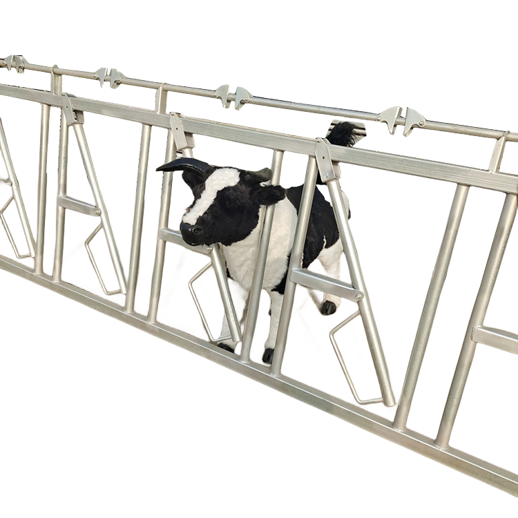 牛颈枷非常方便兽医和管理人员对牛的检查、免疫注射和人工受精等操作。便于奶牛保定、可在奶牛低头采食时灵活开合,便于兽医或配种员对奶牛进行常规体检、免疫、人工受精、妊娠、治疗、去角、产犊等活动,降低劳动强度,提工作效率。